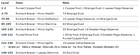 Upar enchant é MUITO caro. Se for powerlevelar, é mais caro ainda. Esteja preparado para gastar bastante gold nessa profissão.